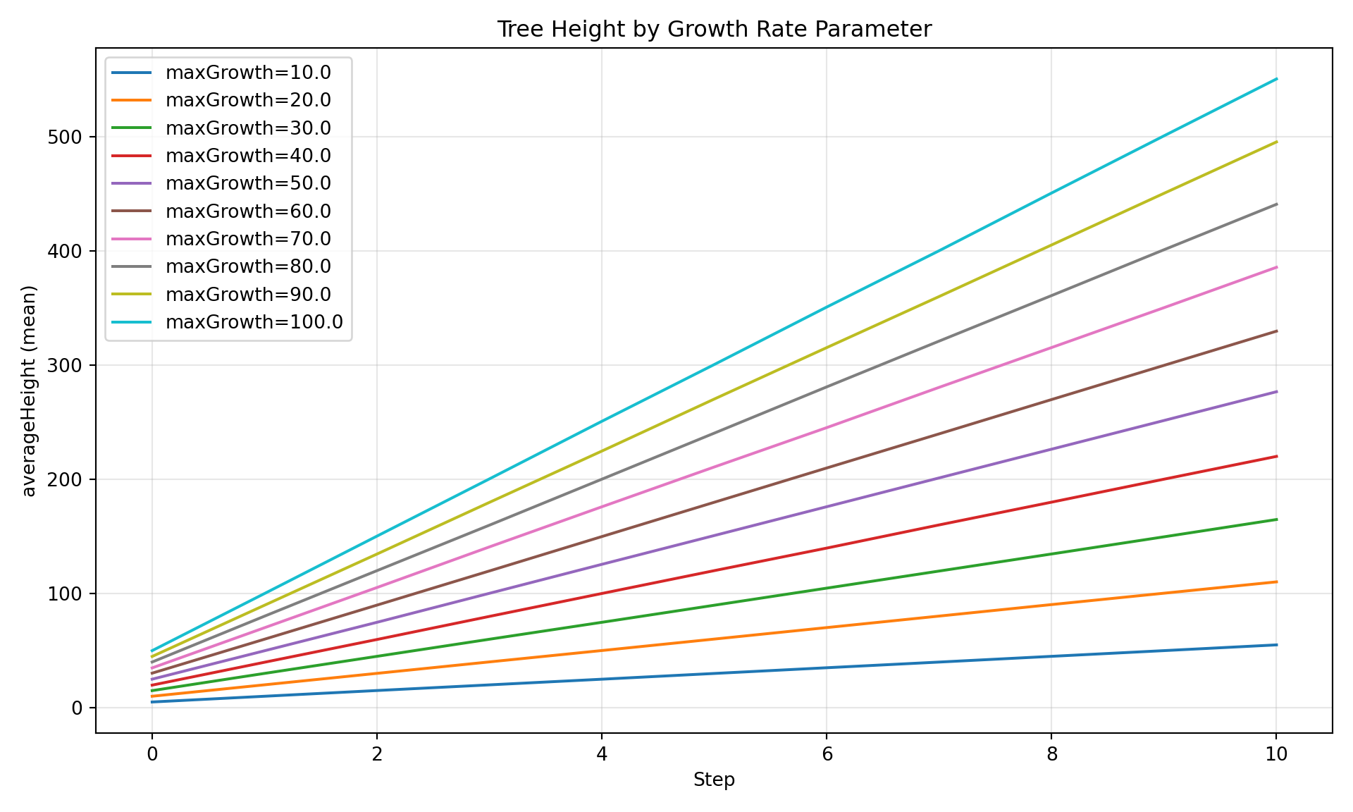 # Parameter sweep: maxGrowth from 10 to 100 in steps of 10