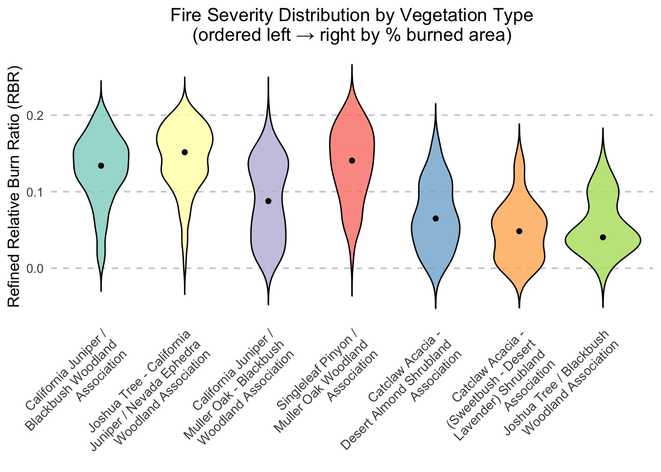 title = "Fire Severity Distribution by Vegetation Type\n(ordered left → right by % burned area)") +